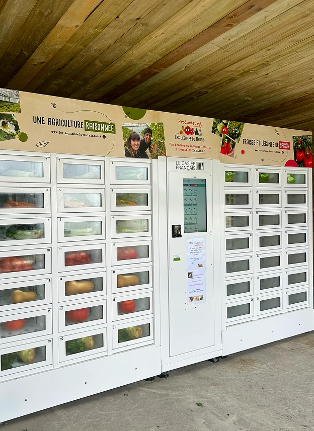 Faites le plein de légumes en libre service avec les casiers 24/24 distributeur automatique de légumes 17 rue nationale, Aisne à Chaillé les Marais.